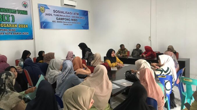 Banda Aceh – Dalam upaya mengurangi angka penyebaran penyakit AIDS, Tuberculosis (TB), dan Malaria (ATM), pemerintah Gampong Mibo bersama dengan Puskesmas Banda Raya menyelenggarakan sosialisasi pencegahan dan penanggulangan penyakit ATM. Acara ini berlangsung pada Kamis (19/12) di Gedung Perpustakaan gampong Mibo, dihadiri oleh perangkat kader kesehatan dan warga masyarakat.